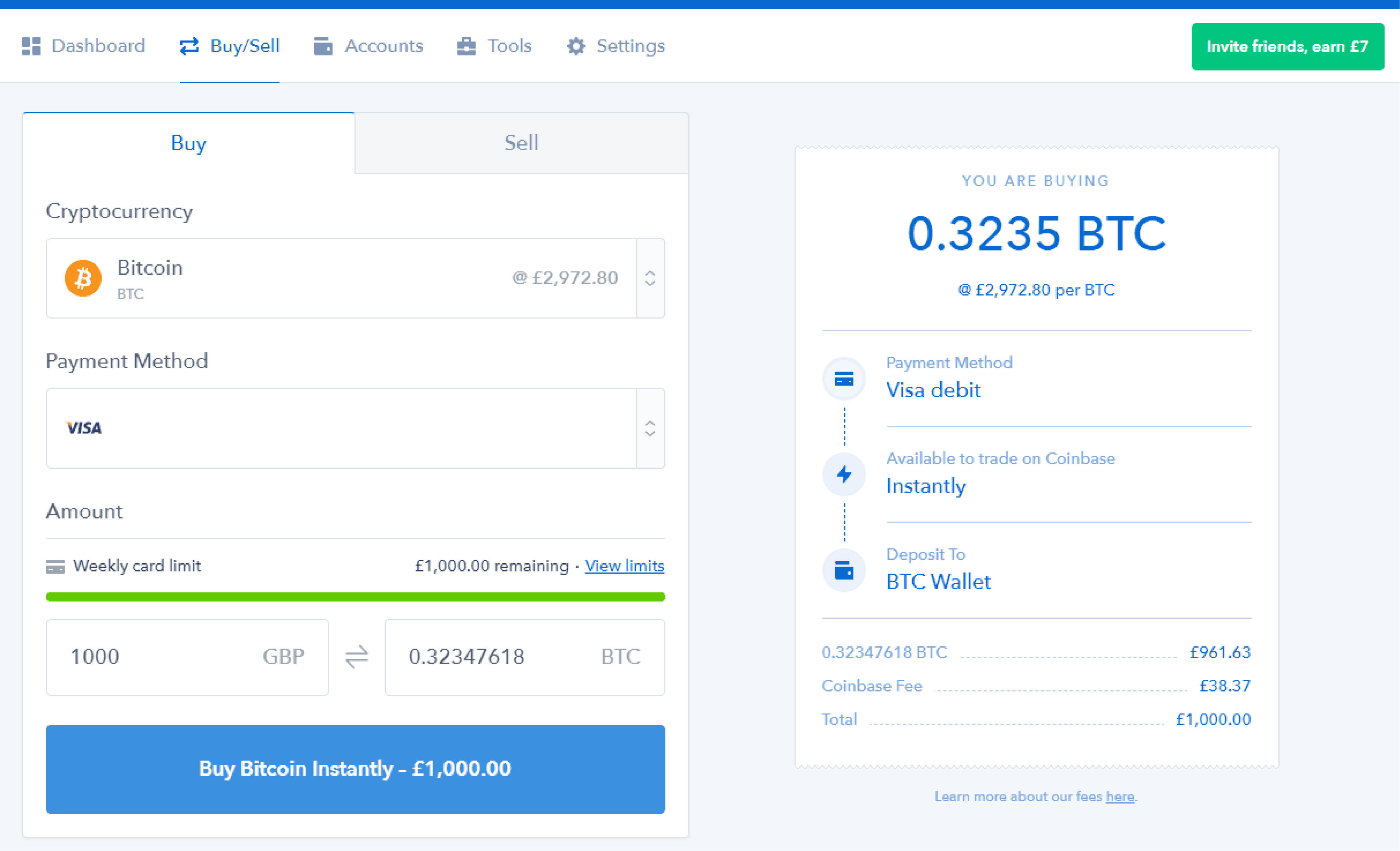 Coinbase also charges its ‘Coinbase Fee’ on all transactions, which is the greater of either a flat rate or a percentage rate depending on location and payment type.