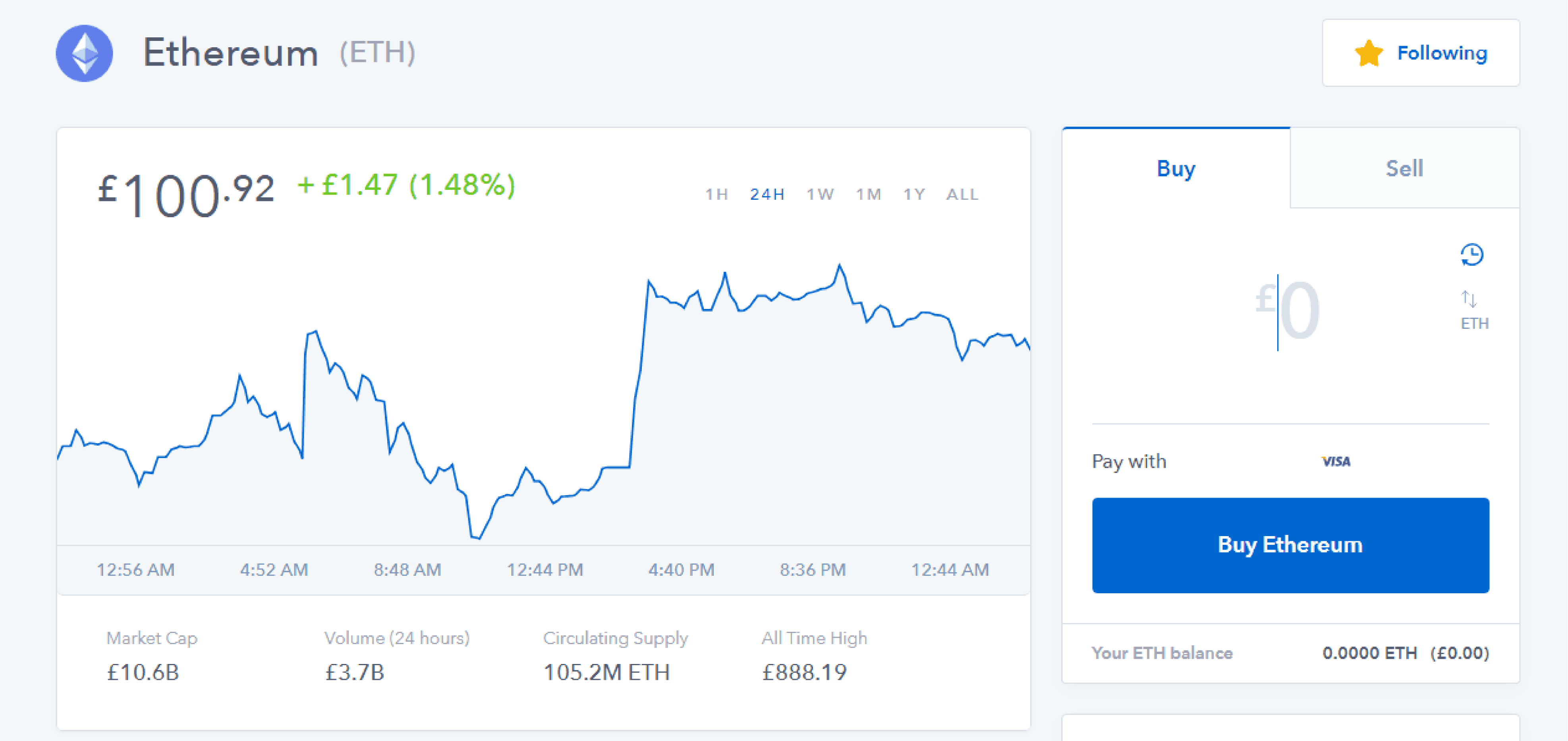 Each cryptocurrency will have some basic historical price data displayed as well as the option to either buy or sell this cryptocurrency.